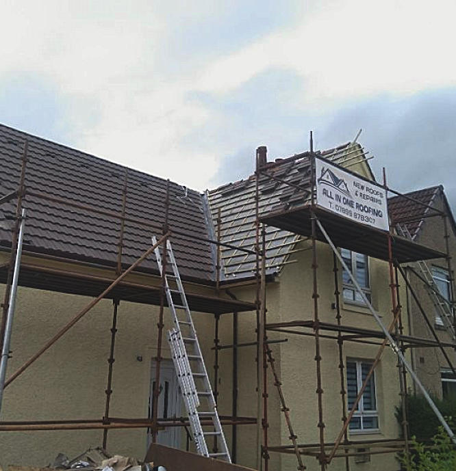 All In One Roofing, based in Barrhead, have a growing reputation as the roofing specialists of choice for new roofs, roof repairs and all other roofing services in Barrhead, Glasgow and Renfrewshire. Our experienced tradesmen are highly skilled in all aspects of roofing services, including: New Roofs; Roof Repairs; Tiles; Slates; Ridges; Gutters; Downpipes; Fascias, Soffits, Lead-work, dry verge and much more… We also carry out Insurance work and chimney removal. As your highly rated local roofing company, you can absolutely depend on All In One Roofing to always provide you with good, honest advice, the highest standards of workmanship, fully guaranteed work, and all at the most competitive rates.