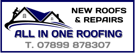With many years’ experience in roofing, All In One Roofing are best placed to expertly carry out any roofing work that you may need - from new roofs, roofing repairs and the whole range of other roofing related services. We take care in carefully examining each roof that we are asked to look at or work on. We provide you with open and honest opinions and explain in simple no-fuss language what the situation is and how we intend to deal with it for you - no hassle, no pressure, just good honest advice and friendly customer service. We will also give the best price possible - every time. No matter what type or size of project, we will take on any roofing work if we can - and carry it out to the highest possible standards - guaranteed. Roof leaking? Old roof needing a close look at? Don’t delay roof or guttering repairs - it will cost! Call Pat at All In One Roofing first - for free friendly advice and free no- obligation quotation.